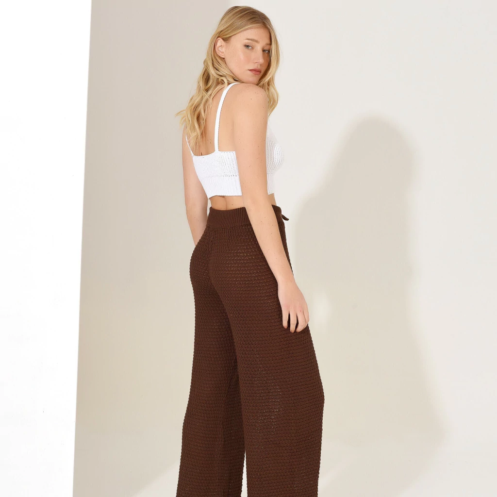 El conjunto "Afrodita" es el equilibrio perfecto entre sensualidad y elegancia. Compuesto por un top corto con escote en V y un pantalón largo con detalles calados, esta combinación de piezas ofrece frescura y sofisticación. Hecho en tejido de alta calidad, es ideal para destacar en los días de verano, brindando un look cómodo pero llamativo para la mujer que busca proyectar confianza y estilo.