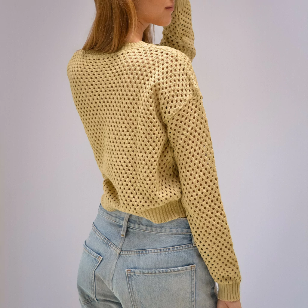Descubre el Sweater Demeter, un diseño calado y de corte cuadradito. Ideal para los días de verano, su tejido fresco te mantendrá cómoda tanto de día como de noche.