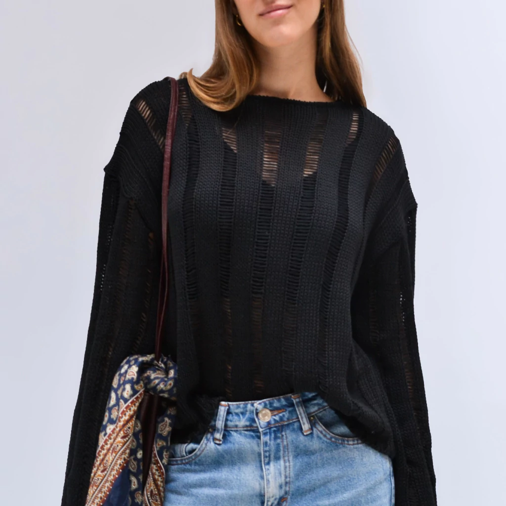 Una prenda que se destaca por sus roturas únicas, ideal tanto para la facultad como para el trabajo. Su diseño moderno y versátil lo convierte en la elección perfecta para salir a almorzar o disfrutar de un café con amigos.